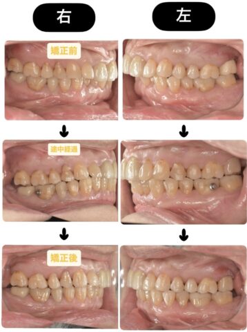 この方は抜歯をせずに進めることができたので期間は3年程です! これでバランスのとれた咬合を獲得できたので、「8020」も達成間違いなしですね!